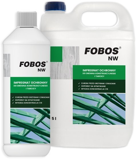 FOBOS® NW to wysokiej jakości, płynny impregnat do drewna, który nie ulega wymyciu. Produkt przeznaczony jest do zastosowania na powierzchniach drewnianych materiałów konstrukcyjnych oraz tarcicy budowalnej. Substancja zabezpiecza powierzchnię przed szkodliwym wpływem grzybów domowych, a także owadów.