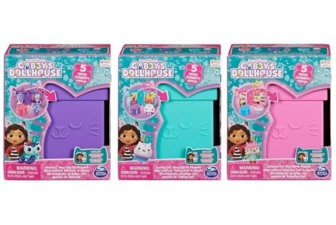 Ciesz się zabawą w udawanie w podróży dzięki zestawowi zabawowemu Koci Domek Gabi: Modne Klipsy! Przedstawiając kota Gabi - Syrenkotkę, w super uroczej łazience kociego domku, ten przenośny zestaw zabawowy zawiera miniaturowy pokój dla lalek z plastikowym klipsem do plecaka, więc możesz go zabrać ze sobą wszędzie! Fani serii Koci Domek Gabi pokochają wieszać ten mini zestaw zabawowy na torbie lub plecaku, aby zabrać ze sobą swoje ekscytujące przygody kociego domku gdziekolwiek się udadzą! Zabierz swój mini zestaw do zabawy ze sobą do samochodu, pociągu, a nawet samolotu, a kiedy już usiądziesz, otwórz zestaw, aby odsłonić mini pokój dla kociaków, dzięki czemu możesz ponownie przeżyć swoje ulubione sceny z serialu! Następnie, tak jak Gabi na początku każdego odcinka, rozpakuj swoje specjalne przesyłki do kociaków i odkryj zabawki-niespodzianki. Kiedy zabawa dobiegnie końca, włóż Syrenkotkę i swoje akcesoria do środka zestawu, zatrzaśnij go, a następnie powieś na plecaku, aż nadejdzie czas na kolejną zabawę! Dla jeszcze bardziej ekscytujących eskapad w kocim domku, zbierz wszystkie trzy możliwe do łączenia mini zestawy Kociego Domku Gabi, takie jak Pokój rękodzieła Tekturzątko i Kuchnia Łakotki! (Każdy sprzedawany osobno) Dla ostatniej niespodzianki zeskanuj kod QR wewnątrz przesyłki do Kociego Domku, aby odblokować specjalną nagrodę w darmowej aplikacji Gabby's Dollhouse App (dostępnej na iOS i Android). Pluszowe zwierzęta, lalki, figurki i zestawy zabawowe z Kociego Domku Gabi to idealne zabawki dla dziewczynek i chłopców, którzy uwielbiają używać wyobraźni do tworzenia własnego świata lalek!