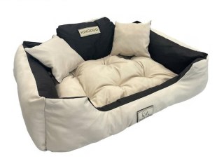 Legowisko zostało uszyte z wysokiej jakości materiałów, dzięki czemu jest solidne i trwałe. Materiał zewnętrzy to nieprzemakalna Codura PVC (wysokiej jakości materiał tapicerski) w kolorze grafitowym jest odporny na zadrapania, brud i zmechacenia, a także łatwy do utrzymania w czystości. Legowisko zostało wypełnione antyalergicznym silikonem, dzięki czemu jest bardzo wygodne. Wnętrze pokryte mięciutkim materiałem w kolorze szarym. Połączenie tych dwóch kolorów sprawia, że całość prezentuje się niezwykle efektownie i pasuje do każdego wnętrza.