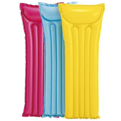 Jednokolorowy materac do pływania. Produkt występuje w kolorach: niebieski, różowy, żółty